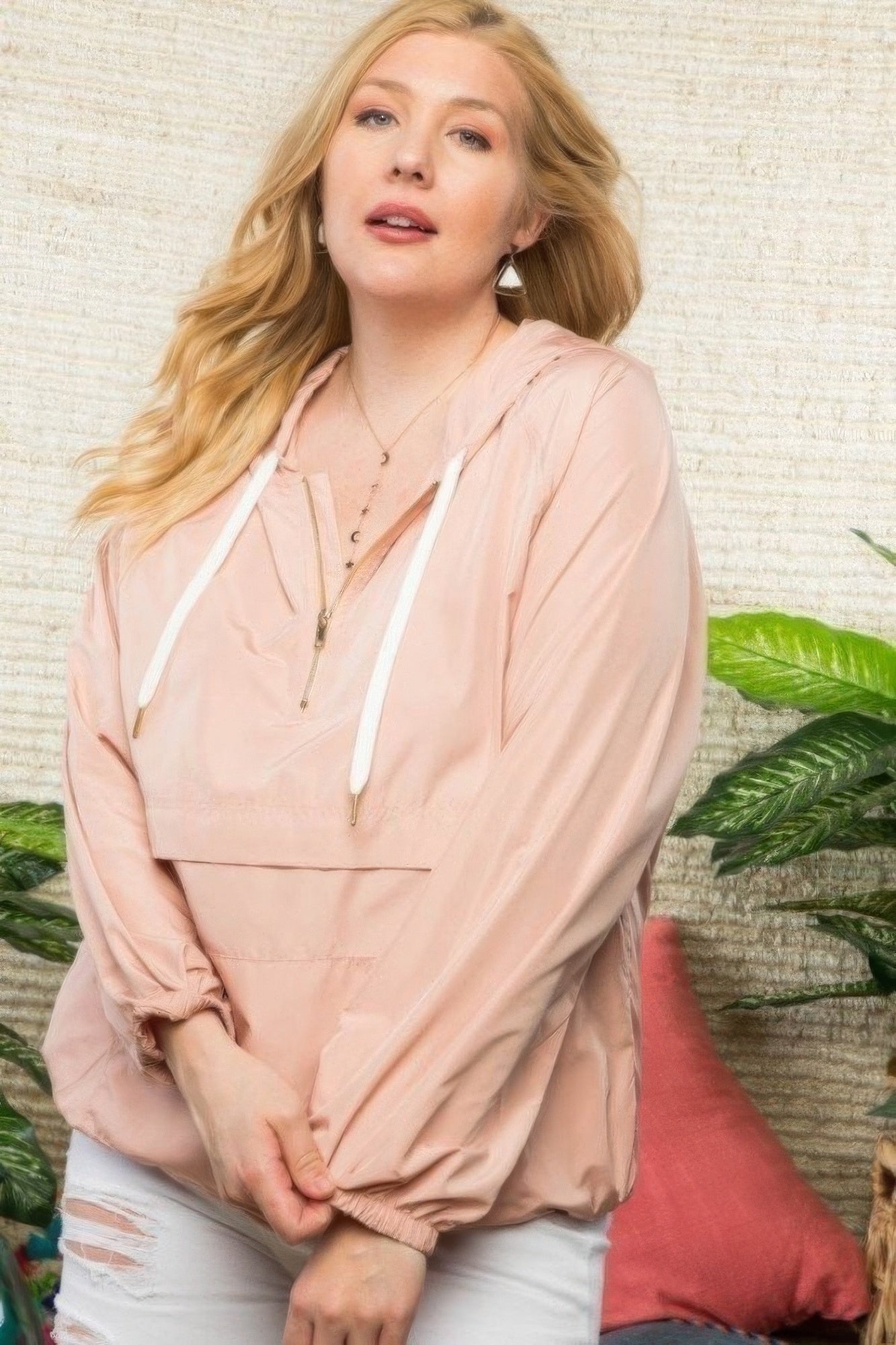 Why Choose Hood Front Metal Zipper Windbreaker in Mauve?